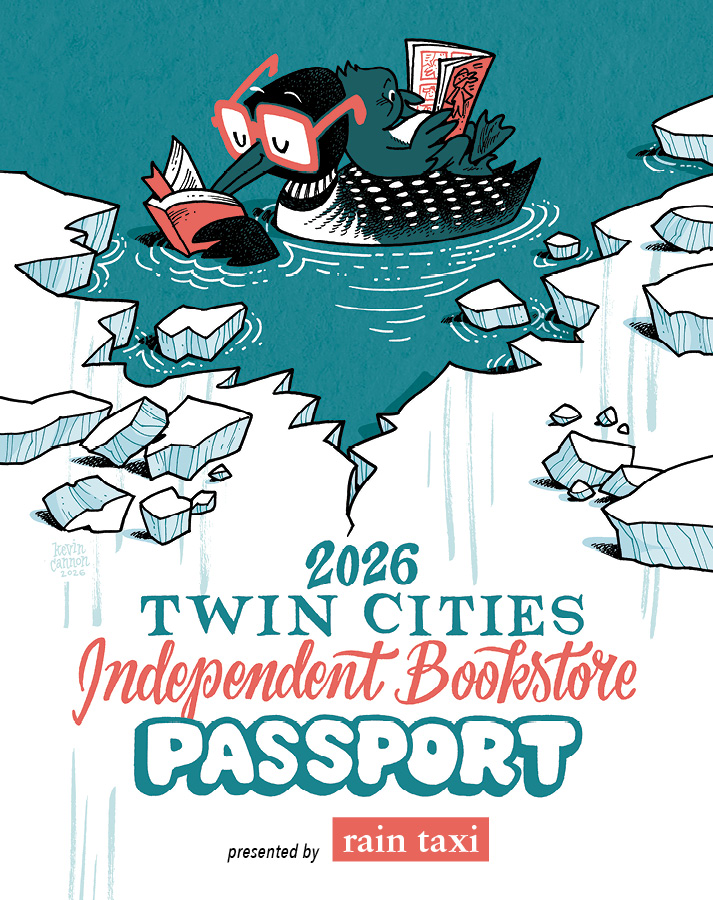 Rain Taxi Review of Books Rain Taxi champions aesthetically adventurous literature through print and online publications, events, and service to the literary community. PASSPORT UPDATEPassport Cover Revealed!Check out artist Kevin Cannon’s cover for Rain Taxi’s 2026 Twin Cities Independent Bookstore Passport! PUBLICATION UPDATESpring Print IssueSpring has sprung with the newest print edition of Rain Taxi Review of Books hitting bookstores and mailboxes near you featuring delightfully sweet cover art by Jamie Kalakaru-Mava. See the contents and purchase here. UPCOMING EVENTIndependent Bookstore PassportGet ready: Rain Taxi’s Twin Cities Independent Bookstore Passport is returning in April 2026! Keep an eye on the event page for details.