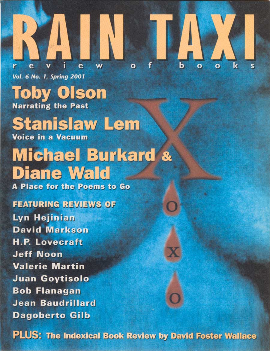 Vol. 6, No.1, Spring 2001 (#21) Toby Olson, Stanislaw Lem, Michael Burkard & Diane Wald, David Foster Wallace on the Prose Poem, and more...purchase now