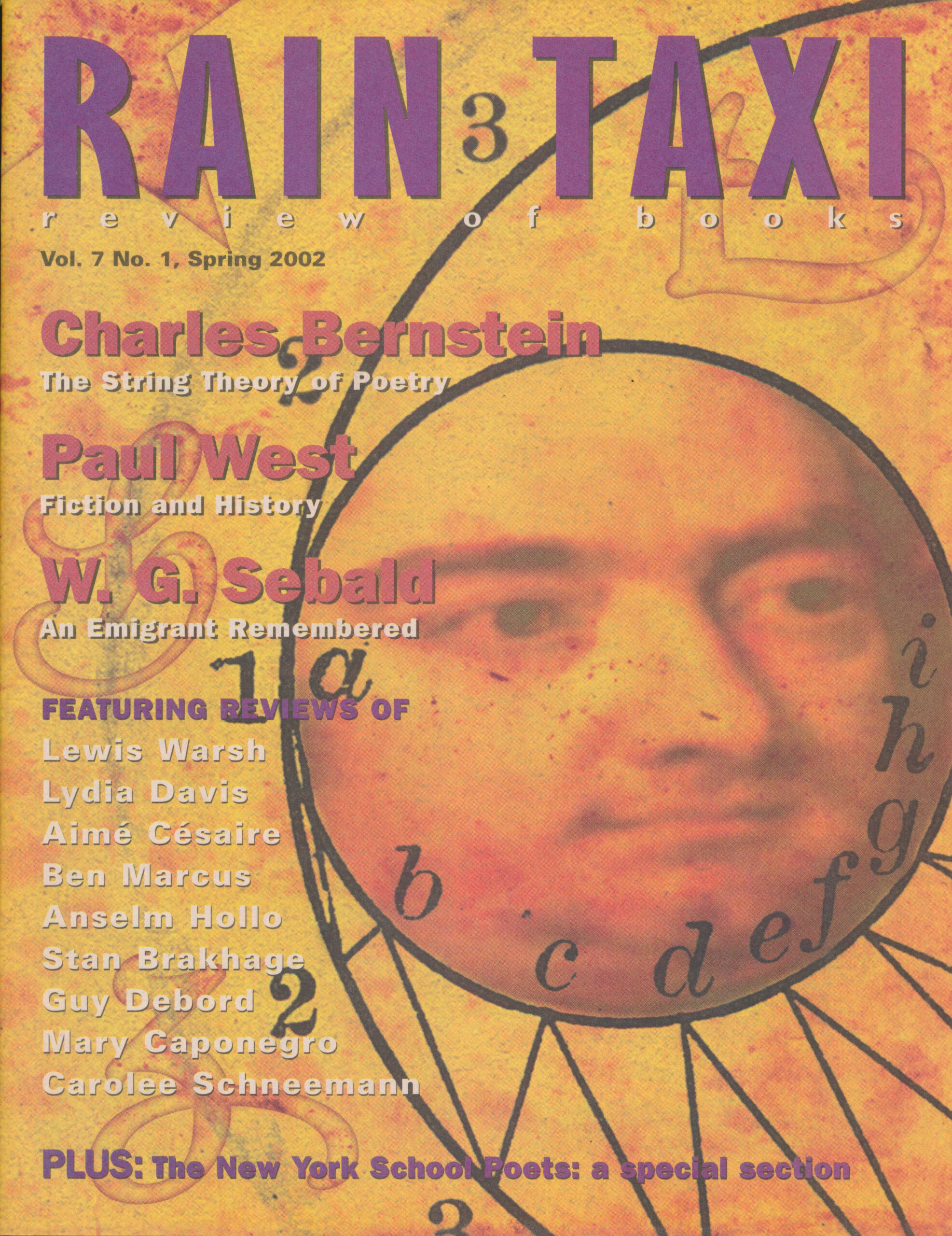 Vol. 7, No.1, Spring 2002 (#25) Charles Bernstein, Paul West, W. G. Sebald, New York School Poets, and more...purchase now