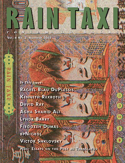 Vol. 8, No.2, Summer 2003 (#30) Rachel Blau DuPlessis, David Ray, Firoozeh Dumas, bp Nichol, Lynda Barry, Kenneth Rexroth, The Poet as Translator, and more...purchase now