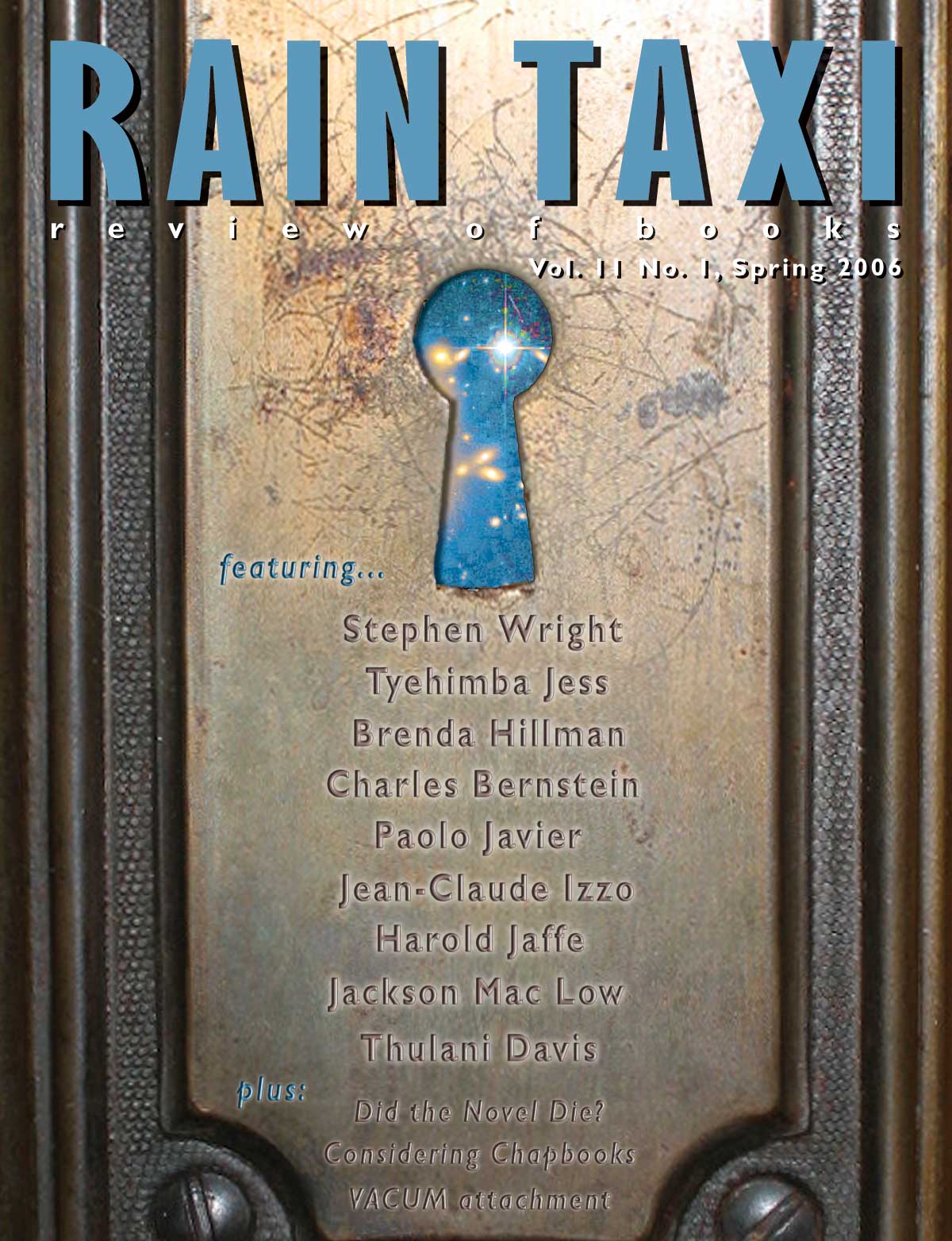 Vol. 11, No.1, Spring 2006 (#41) Stephen Wright, Tyehimba Jess, Brenda Hillman, Charles Bernstein, Harold Jaffe, Jackson Mac Low and more... purchase now