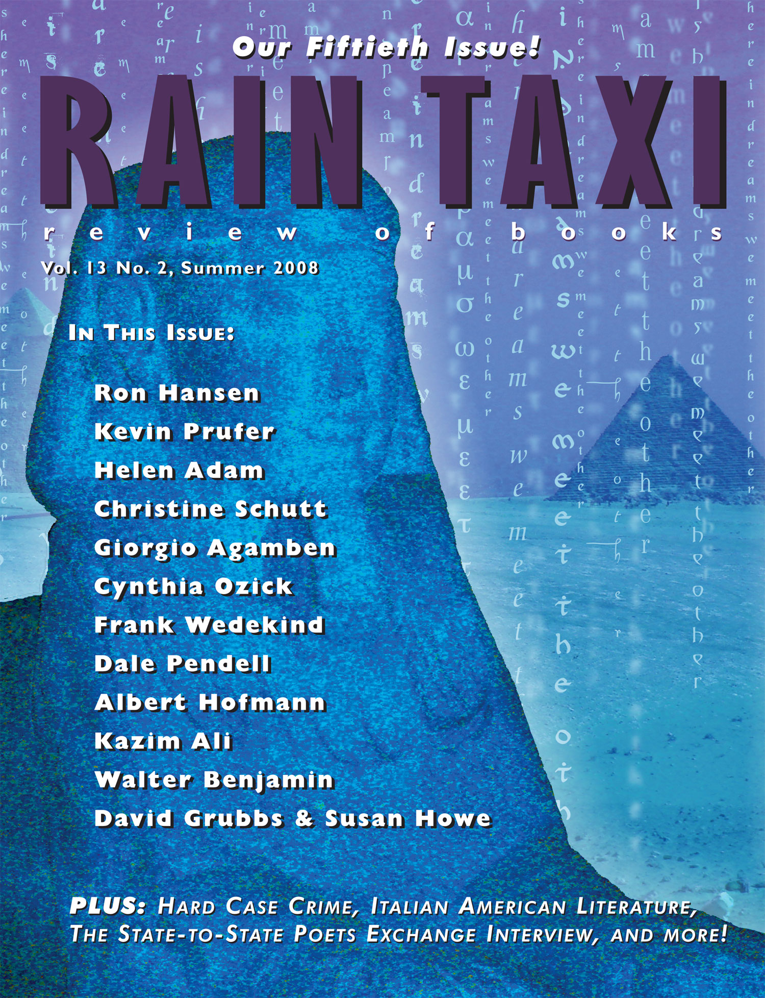 Vol. 13, No.2, Summer 2008 (#50) Ron Hansen, Kevin Prufer, Helen Adam, Christine Schutt, Giorgio Agamben, Dale Pendell, and much more... purchase now